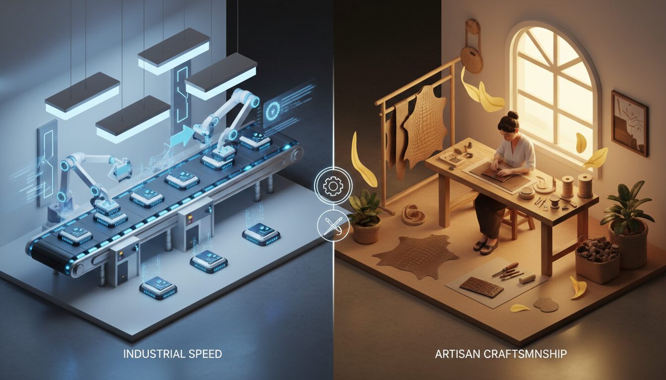 1. 手仕事・少量生産が中心: タイの工場やアトリエは、中国のような大量生産ラインではなく、職人が手作業で仕上げるケースが多い。品質は高いが、生産スピードは遅い